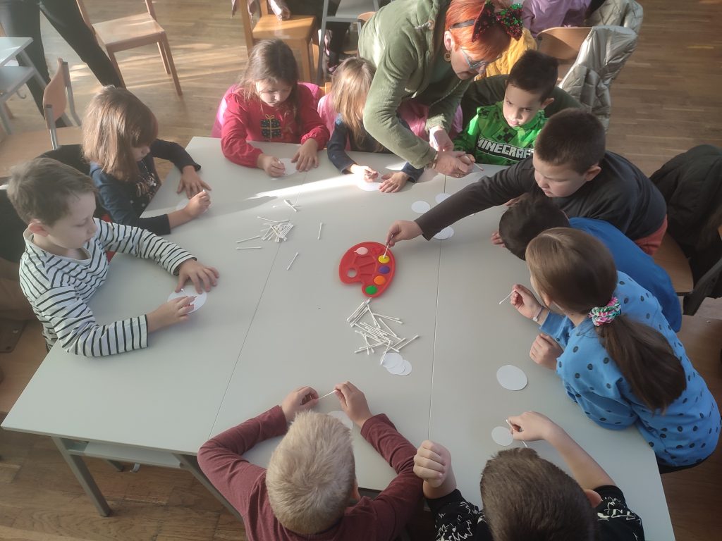 Od mnoštva ponuđenih poticaja zajedno su izrađivali proljetne i uskrsne motive i čestitke. Neki roditelji, potaknuti pozivom na radionicu i sami su donijeli pedagoški neoblikovani materijal za korištenje. Roditelji su slijedili dječje upute i ideje, te zajednički pronalazili najbolja rješenja.